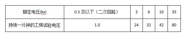10.一次和二次電路及其電器的絕緣強(qiáng)度應(yīng)能承受1分鐘的工頻耐壓試驗而不擊穿或閃絡(luò)。電源頻率測試檢查電壓值見下表。