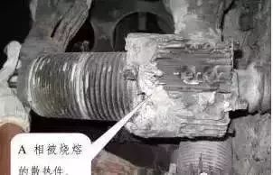 初步分析為:1#主變10kV側(cè)631手車開關(guān)柜A相上側(cè)梅花觸頭與內(nèi)部斷路器靜觸頭接觸不良,發(fā)熱,較終發(fā)展為梅花觸頭對靜觸頭的電弧放電,導(dǎo)致真空斷路器銅觸指嚴(yán)重?zé)龘p,散熱片熔化,靜觸頭盒燃燒,產(chǎn)生大量含金屬離子和碳化合物的煙塵,造成母線三相短路(見附圖)。
