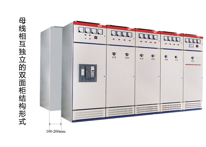 獨(dú)立總線的雙面機(jī)柜結(jié)構(gòu)實(shí)質(zhì)上是將兩組背靠背機(jī)柜安裝在一起,兩組開關(guān)柜的后部一般相隔100-200毫米,作為總線系統(tǒng)的散熱通道。