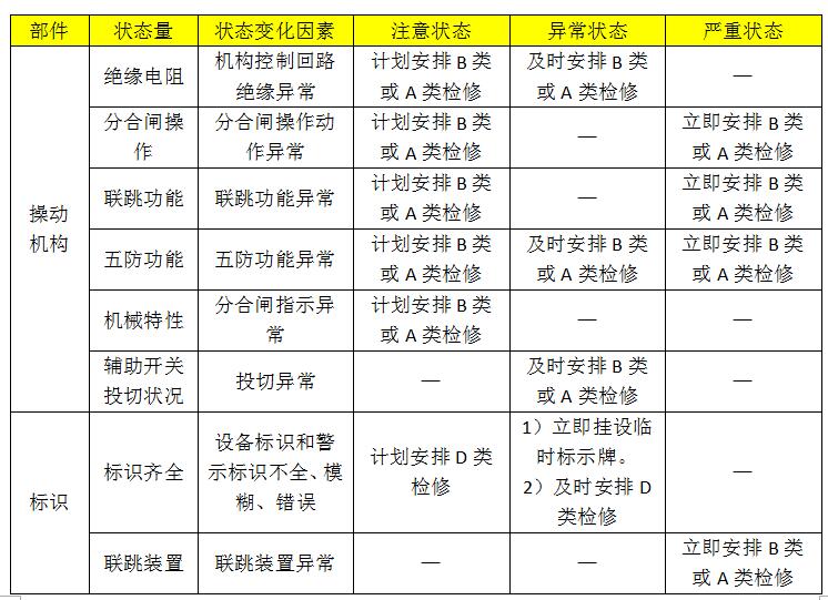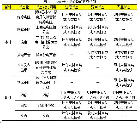 3.10kv開關(guān)柜設(shè)備狀態(tài)維護(hù)(見下表)
