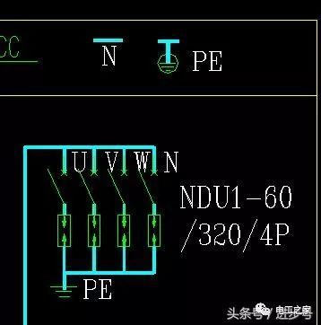 這部分表示PE接地,并且在方框中有一個零線行。