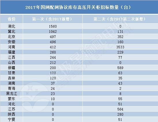 2017年,全國(guó)電網(wǎng)配電網(wǎng)設(shè)備協(xié)議庫(kù)存開(kāi)關(guān)柜類設(shè)備共被邀請(qǐng)4次,主要是高壓開(kāi)關(guān)柜類設(shè)備,共邀請(qǐng)招標(biāo)11540臺(tái)。其中,首次高壓開(kāi)關(guān)柜(含2017年新增)招標(biāo)涉及15家省級(jí)公司,共計(jì)5307臺(tái)。第二高電壓開(kāi)關(guān)柜(包括第二次新增)有17家省級(jí)電網(wǎng)公司參與,共6233臺(tái)。投標(biāo)前后的投標(biāo)數(shù)量差異很小,而且相對(duì)穩(wěn)定。根據(jù)中國(guó)國(guó)家電網(wǎng)公司2018年發(fā)布的統(tǒng)計(jì)數(shù)據(jù),高壓開(kāi)關(guān)柜競(jìng)價(jià)的數(shù)量為6499臺(tái)。由此可見(jiàn),高壓量開(kāi)關(guān)柜在國(guó)家電網(wǎng)配電網(wǎng)設(shè)備協(xié)議清單投標(biāo)中保持了一定的穩(wěn)定性。